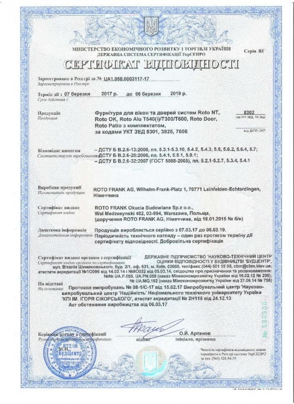 Сертификаты на оконную фурнитуру